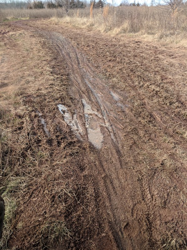 And now you also know why I bitch about this shit. We aren’t puddle police. It looks terrible. And... My morning tomorrow is going to be filled with fighting all these ruts while I ride as they freeze up overnight. And that is a bummer.