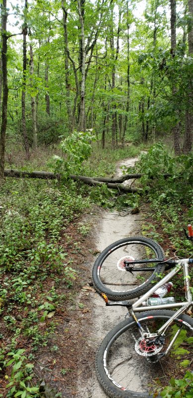 On an unrelated note: there is so much deadfall on the ground, it would be prudent not to bring your derailleur bike with you. I mangled my XTR derailleur, and replacements aren't available until the end of October (Q.Q). Y'all have been warned.