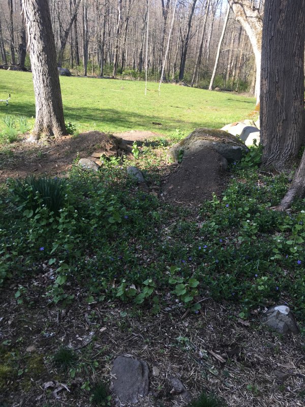 Looks fun Paul. Heres a couple of pictures of a 3 1/2' wooden jump I built. Also got a bunch of trails I made in my woods that are fun and flowy but have a few rock gardens too. Got about 20 yards of fill dirt from a friend play with. Building up my berms and making a table top. Might be the only mountain biking I have for a while.