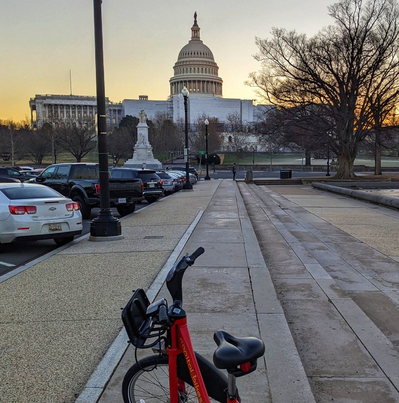 Rode my Capital Bikeshare POS down from the Eaton Hotel hood to the Capitol (n.b. spelling that was notably incorrect in Facebook posts around 1/6/21.) Forgot to turn Garmin on due to LOIQ and struggle with non working bikes. Probably two miles and 18-28 minutes through Chinatown. Attached is the picture of the Shakespeare Theater by the Capitals Arena. I submit my points to the mercy of @Johnny Utah and Judge Rick.
