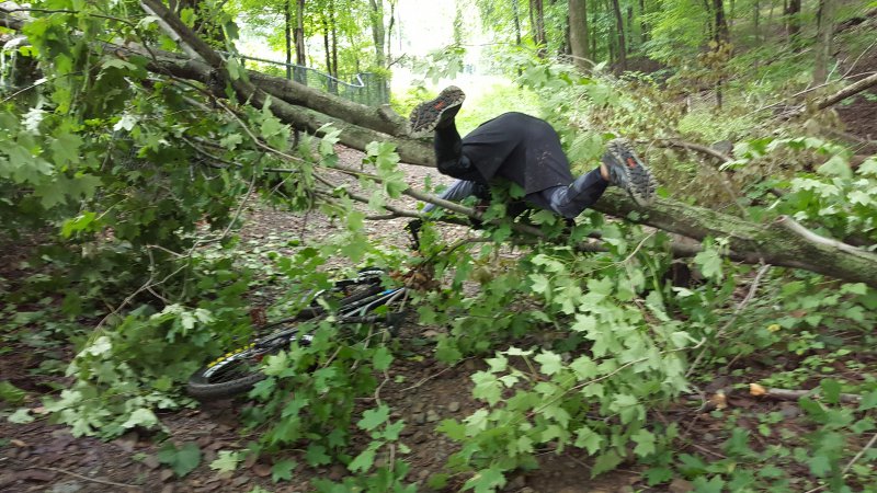 Trial was decent yesterday, I give a tour to some of my MTB friends who never been there. Some tree down, I found a local guy cleaning up with a chainsaw. I show him some pictures of them, I only was able to verify one and he cut it off and clean the path going in red to chimney rock avenue. The other 2 tree I was not able to verify if he cut them. One of them was in White Trail and the other in the Yellow by the river at the entrance.