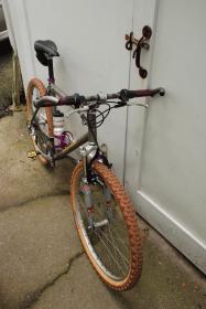 This bike is almost museum quality, lots of magenta bling, Rock Shok Mag21, original gum Tioga Psycho tires. The recent rains have stopped me from doing much trail riding, but I spend a lot of time at Stokes State Forest and ride the rocky trails there.
