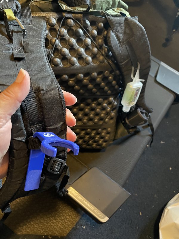 Nice setup. I saw that clip on Z-Packs. I'm trying to get the bladder/bottles off my body and onto the bike for a bikepacking trip. Ideally, looking for a 1l Pepsi bottle (very light) with a wider opening and thread compatibility with the BeeFree, directly or via an adaptor. I might try 1l Smartwater bottles and using the Z-Packs bottle holders for shoulder straps (16 gr vs 102 gr of the Revelate Mountain Feed bags), adapting those to hang from the handlebar & stem. The form factor of those might too tall/skinny though.