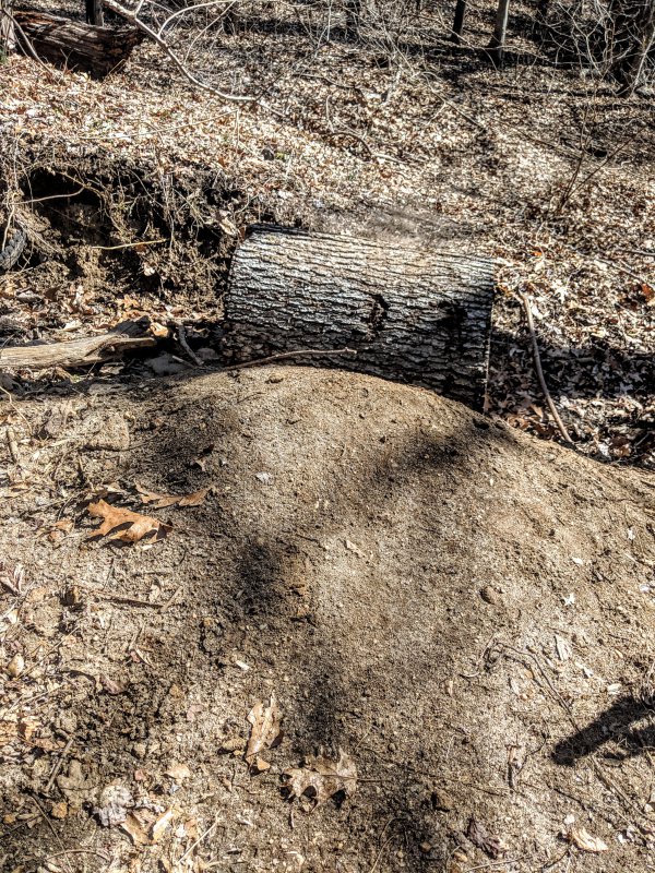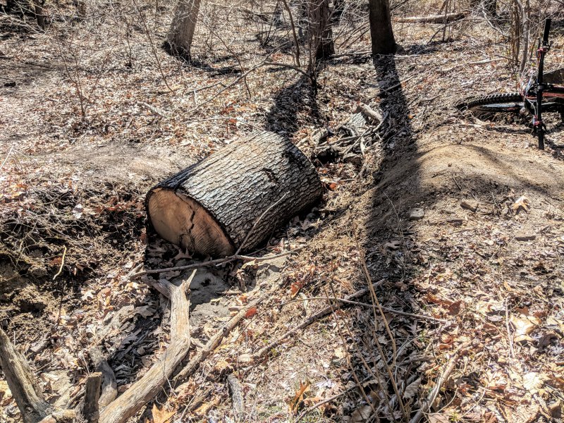 That's been there awhile. If you choose to hit this, I don't, the ramp will launch you over the log since it's higher then the log. It's in a dumb spot and off the trail so most people do not hit this and if you do then I hope you know what you'r doin...Just got back from Hartshorn and conditions were premium!! Rode all the trails, just the usual mud puddle near the stream and bridge. Also here is the new illegal jump someone built. I think the log in there is a terrible idea. Someone is gonna clip their rear tire and get catapulted OTB..or worse, get the front tire wedged on takeoff and Superman themselves ...