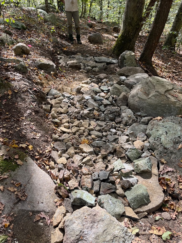 As for trail work: I have been working at Sterling on the new trail ( Red Back ) on the west side of the park. Where the new trail leaves Laurel Meadow trail, it stays on existing double track for a little bit. The first re-route build section is being done by NYNJTC americorp workers. The rest is a combination of machine build and hand build: some done and some needed to be done. I am working with a group doing hand build. We just completed a seasonal water crossing with stone and some turns going down the hill to the water. Some crush and dirt was added on both ends of the crossing, but the actual crossing is big slabs of rock. I am not sure what is next, but things are looking good for completion soon. I also think funding has been secured for machine build part. Thanks to all that donated and have been out working!