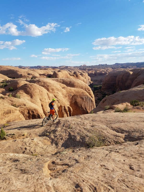So the trail itself....Way more fun than I was expecting...Its odd riding what feels like rock pavement....grip is endless. Downhills and uphills are short and usually steep. Made for some tough climbing on my already tired legs. Did I think it was the best trail in moab? Certainly not...was it worth going to, 100%. Really cool. We did clean every climb except for part of one....so steep. I used the living shit out of that 50T pie plate that was on the back of my bike. Kinda reminded me of riding at Fugawe with regard to the effort.