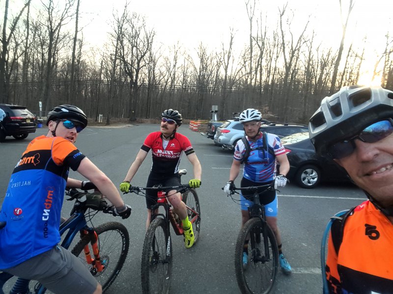 Post ride glow. Jeremy, Matt, Jeff, Carbon rims Iggy. Total elevation; 40,289'