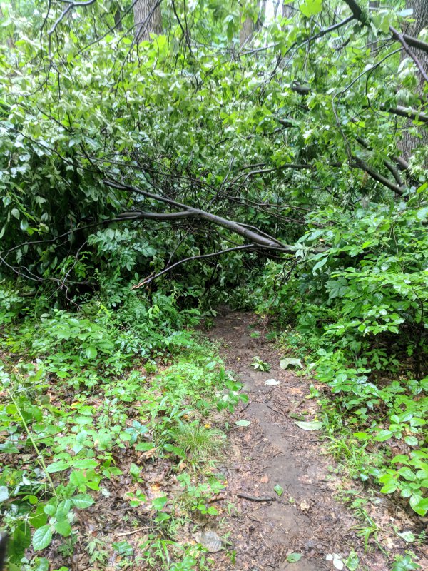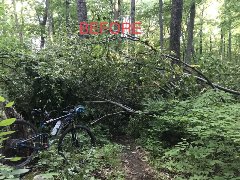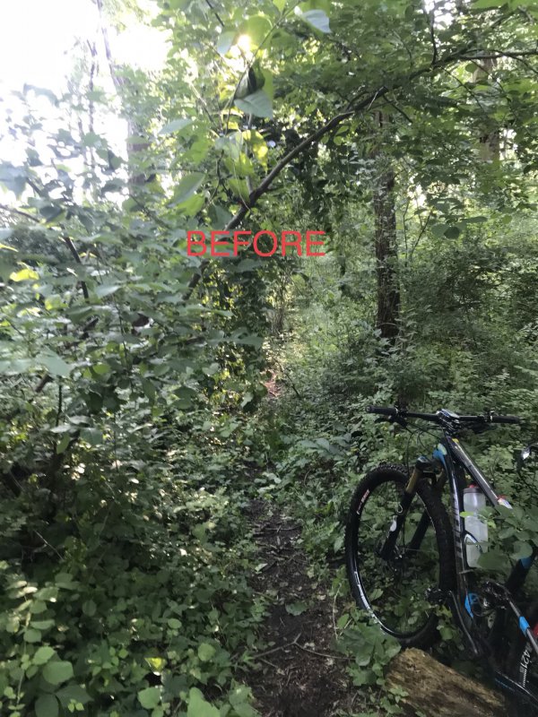 FWIW, a silky saw (or any folding but the silky gets the nod for its incredibly sharp blade)is the best thing I have found for trimming, hands down.Spent some time this morning trimming Orange and a bit of Blue. Still needs a lot more and will be back. The Yellow loop is in decent shape but a very large tree down near the start off Blue.