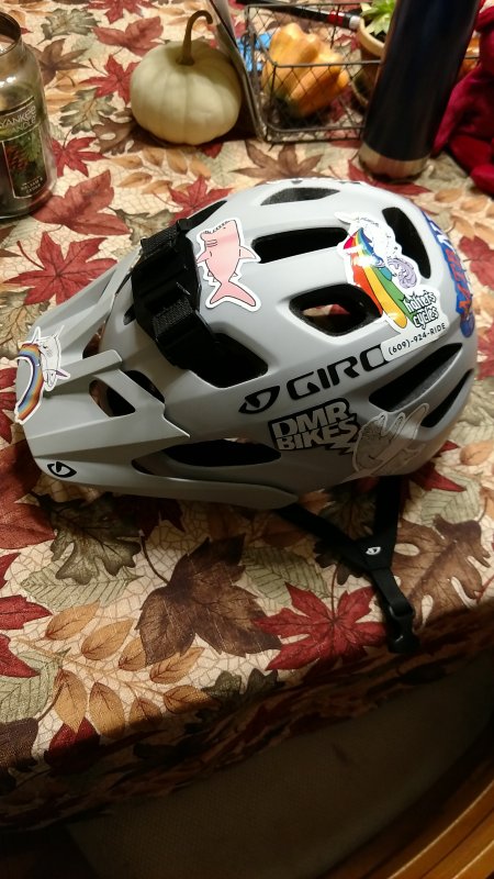Starting to look like my POSSNot quite my bike but I got home from work today to find out that my kids decided to sticker bomb my helmet.