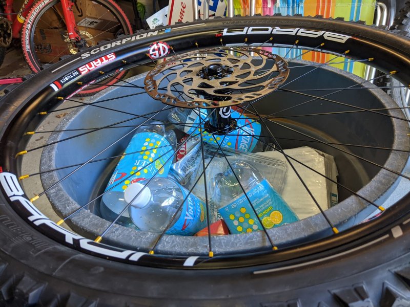 Swapped the front to a Pirelli Scorpion S and did my first setup as tubeless. Man, I must be getting old. It used to be much easier to get tires onto the rim. Odd thing... you can't find 36mm tubeless rim tape anywhere these days.