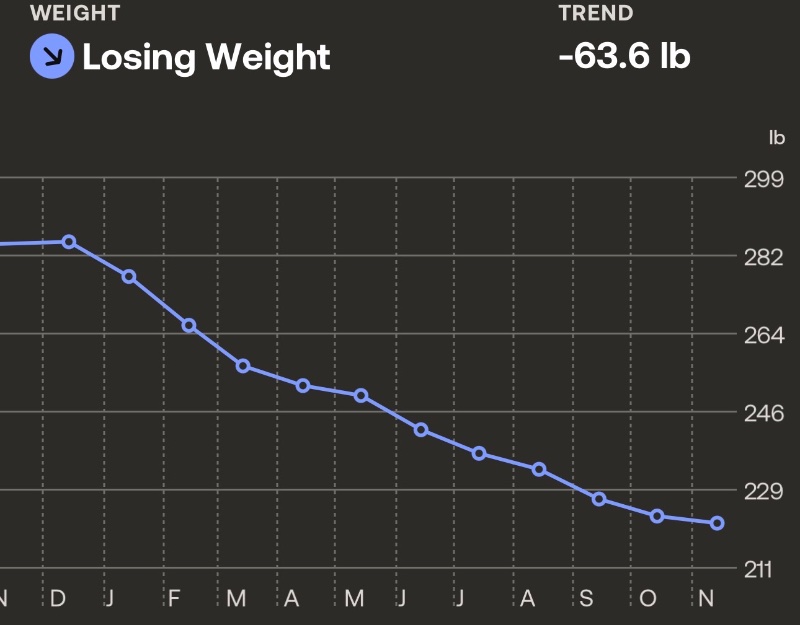 Congrats on the health improvement, you looked great when we met at Allaire. Kind of doing the same but I can't get off bread 100%, currently limiting it to the weekends. Also intermittent fasting seems to be working.
