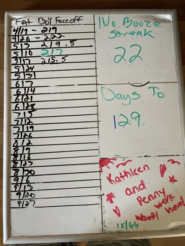 Two week check in, down 3.5 lbs. 22 days no booze and only meal out was Mother’s Day where I took a lower calories option. It would be nice to see the 180’s again prior to the end of September.