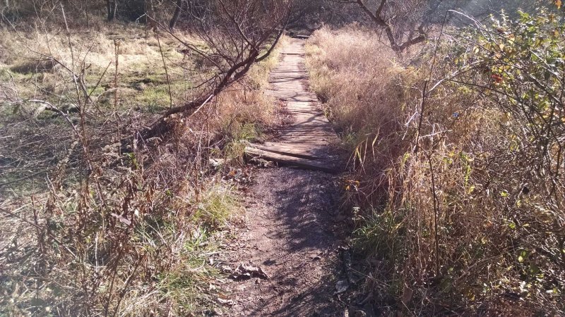 Great day at Chimney Rock today. Besides the mud in spots it was an awesome day to ride. Weather was great....not too hot...not too cold. Please was empty...1 car in the lot at lunchtime. At the east end of the white trail I noticed another board broken at the end of the raised wooden platform. The remaining 2 boards you see are pretty spongy and are probably going to break very soon if enough weight goes over them which will result in an ugly otb especially if your ripping down the hill. Just a little warning.....