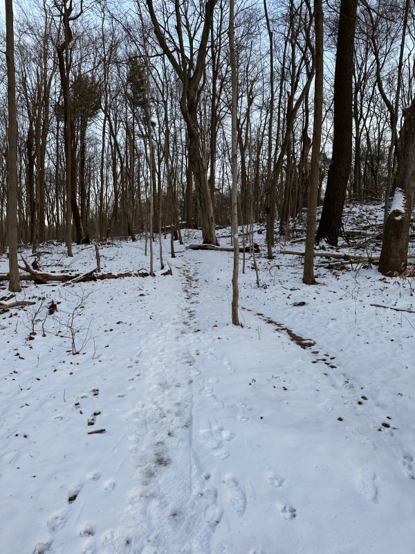 Around 11 am this morning when we hit it, the trail started to thaw and it was definitely soft. Something to be aware of the rest of the freeze/thaw season with the new dirt. Can't wait to come back when it's nice and firm.