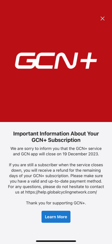 Given the news, we really want to express our thanks, to you, and the hundreds of thousands of cycling fans who have supported us and subscribed to GCN+.