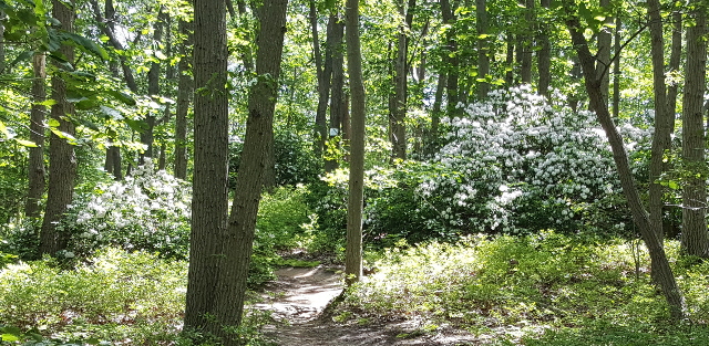 It was pretty good today. This is not the “fast” hero dirt hartshorne but the “fun” all the sand fell into the berms hartshorne. Mostly dry and lots of erosion. Some trees down in dangerous spots. Some asshat thought it was a good idea to build a double about a minute into rocky point if you enter from the lot. There is a huge log in the gap but still a big gap. Someone is going to get hurt.Beautiful weather, great conditions (except for the aforementioned mud hole by the bridge.) The Claypit connector was still a bit moist, but no standing water or sloppy mud. And, it's all pretty with the blooming laurel 🙂