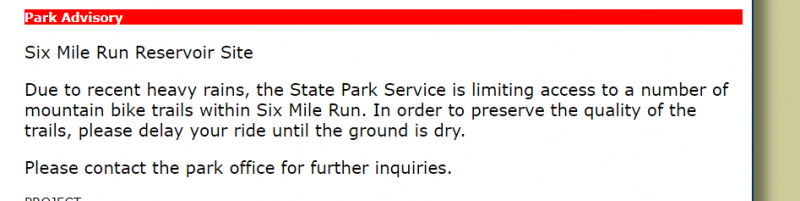 I haven't ridden at 6 Mile since October 24th and I agree with closing the trails. I think the whole "closure" was poorly conducted, poorly communicated, and obviously not enforced. This gives serious question as to whether or not it's even a legitimate closure. We can all make our own conclusion on that based on the lack of a clear, official response. I've been biting my tongue on this for a while because I didn't want to put it in writing on this site but I feel it needs to be said.