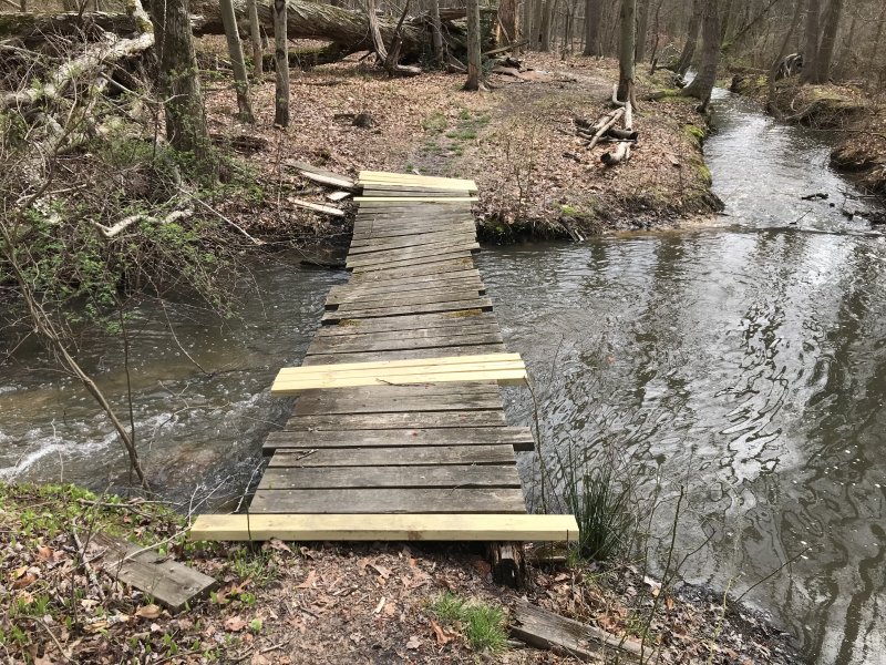 Big News! Mercer park maintenance is actively looking to remedy what has become known as the bouncy bridge on Blue North! We expect to soon hear from the land steward and park maintenance director. They have inspected the existing bridge.