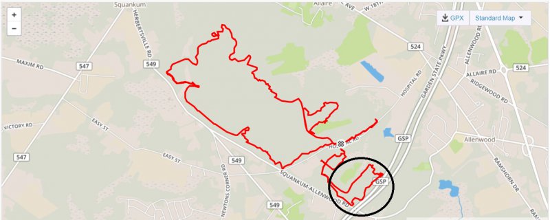Rode to the traction line, took that into Morristown, then made my way over to the beginning of Patriots Path, down behind Marty's. Took that to the lot across from Sunrise Lake at LewMo, and took the road back from there. Going up Boat Loop Climb on a CX bike with 42/32 gearing and gravel tires was, umm, fun?