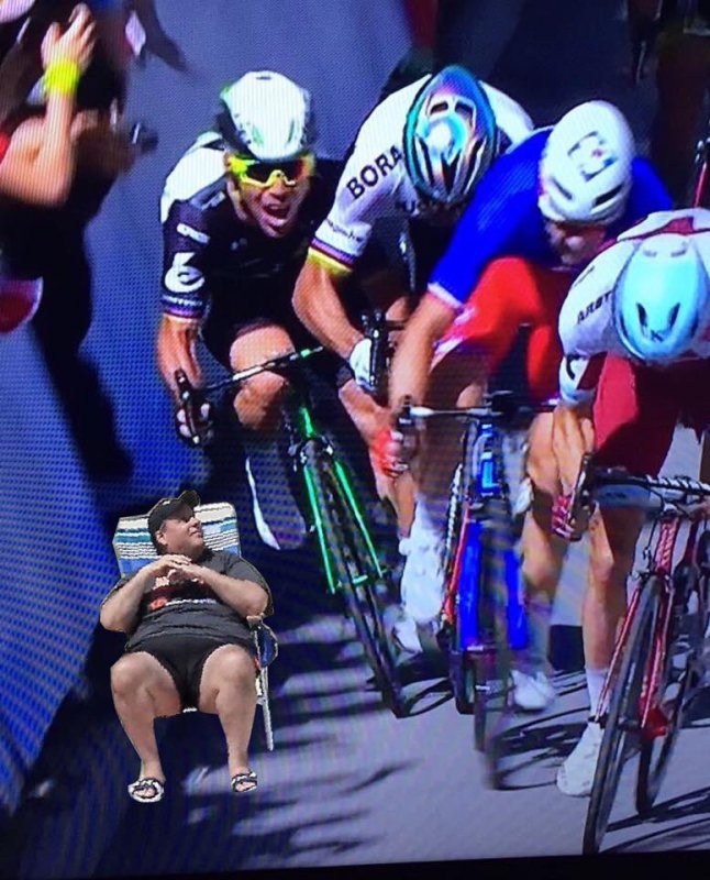 Sagan DQ'ed and out of TdF. A bit surprised with that. I didn't think Sagan was at fault. It think it was just racing and no one holding a straight line. DeMare was moving around and almost took out Bouhani. The whole sprint was messy, not just Sagan and Cav. I think Cav was forcing into a gap that might not have been there. It doesn't look like Sagan's elbow ever made contact with Cav. It looked like Cav has had Demare's wheel, but lost it and Sagan jumped onto it. DeMare shifted to the right and Sagan followed when Cav tried to jump the gap from behind. I dunno who was really at fault and kinda just think it was the unfortunate part of racing.
