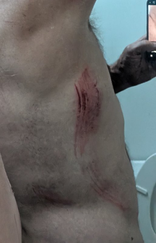 After the 2nd shower I decided the forearm needed tegaderm to prevent infection plus I don’t have big enough patch type bandaids to cover it. Already feels better.