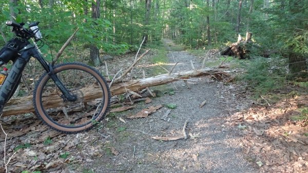 It’s been nice and hot and dry so far this month and I’m really enjoying it. Lots of bear activity lately in the park, some scare me but mostly I scare them. I’ve got over 2000 miles ridden so far this year which about average for me. I’ve been on the trails and on the road lately too. Trails beat me up and road smoothes me out. The bike has been great, no break downs or flats. Been wearing my carpel tunnel brace lately, it’s been acting up giving me shooting electric shocks down through the hand. I also got a rotator shoulder support which helps my tore up muscles, and a knee support for my bad knee. God, I‘m falling apart! My riding experiences have been amazing! I usually don’t have a plan when I start out, I figure it as I go. Like today, I had one goal, ride gate to gate for a change. Up to that point I just rode and then came upon a small tree across Wingdam trail. Got the saw out and took care of that. The unplanned TM. On the way back I saw Br’er Bear scooting off the trail ahead, heard me coming I guess. That reminds me, a few days ago I was picking up bottles and cans off my favorite trails and had them in a bag over my handlebars. Up ahead I see THE HUGE Iron Mountain bear, the one that never moves for anyone, except for today, with all my cans and bottles jingling it didn’t know what the hell was coming, so it took off running. Ha. I had a little exploring adventure for the Marian drive access trail into the park this week too. I rode this once a while ago from the park out, but never took it into the park. I had a written list of roads to take to get there, but forgot to bring it, so I winged it from memory. Found it just fine and rode it in. It’s a quad trail, but tough in spots with quick short up hills and rocks and roots. I still did good on it and it was a nice little adventure. It’s been so dry lately I even hit Double Pond trail out to Plymouth, which is always mud and wet, but even though still a little muddy I rode right through it fine. The bugs have been pretty bad lately but a light hoody shirt wards them off. That’s it for now. Happy Trails!