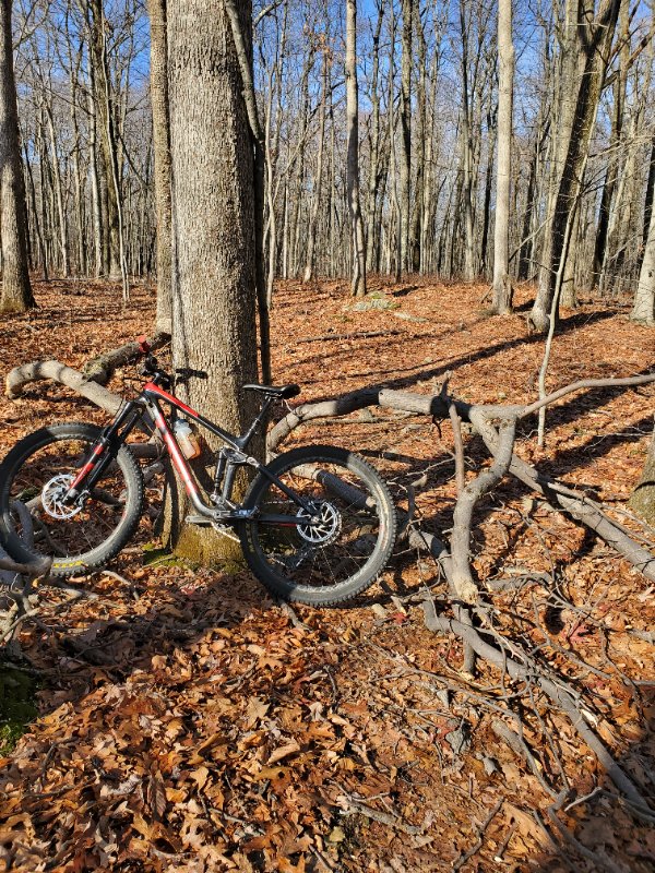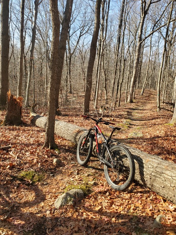 After almost 5 months away from Mt biking, my rentry was supposed to be a few low-key non-TM rides to ease back into things. Instead, I strapped on the chainsaw pack and "threw myself to the dogs" today. Was a crisp 30 degrees and gorgeous out. With Teutonic’s help, we cleared 6 obstructions in 2.5 hours on Lower Maze, Hally To, and Golden trail before heading back to the cars at the RR Crossing. This was a struggle and a half for me due to the ongoing vertigo issues, much diminished cardio abilities (I gained a few pounds), and simply not having ridden in so long. I had to take numerous breaks, and I had to walk my bike over some rock gardens and other complicated spots. This included a stupid fall when my heavily leaning scabbard caught a tree and gently swept me right off the bike. Doh! That aside, it was good to knock the cobwebs off and get back in the game. Thanks again to Teutonic for his most excellent Intel and assistance.