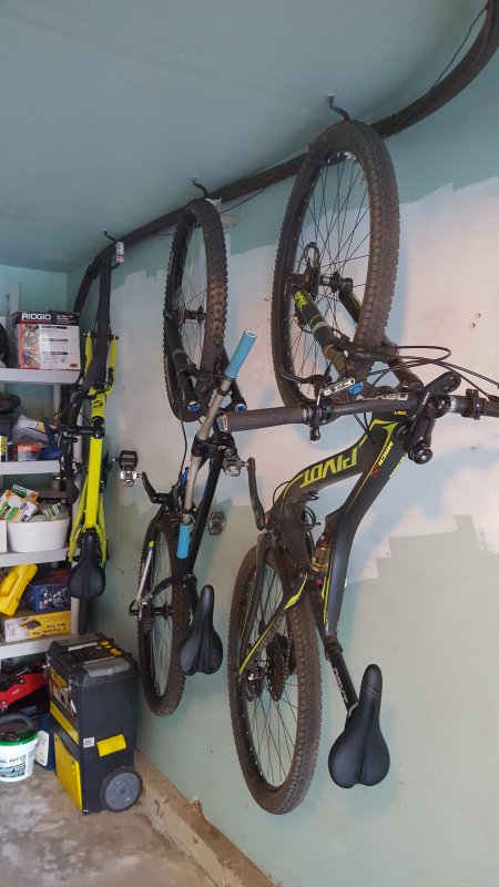 interesting that you turn the bars for the other bikes, so are they winterized for the season? most of mine were also hung up but the wife kept on complaining that the bars were poking her each time she got out of the car. This was not a problem till every bike's bars grew by at least 100mm