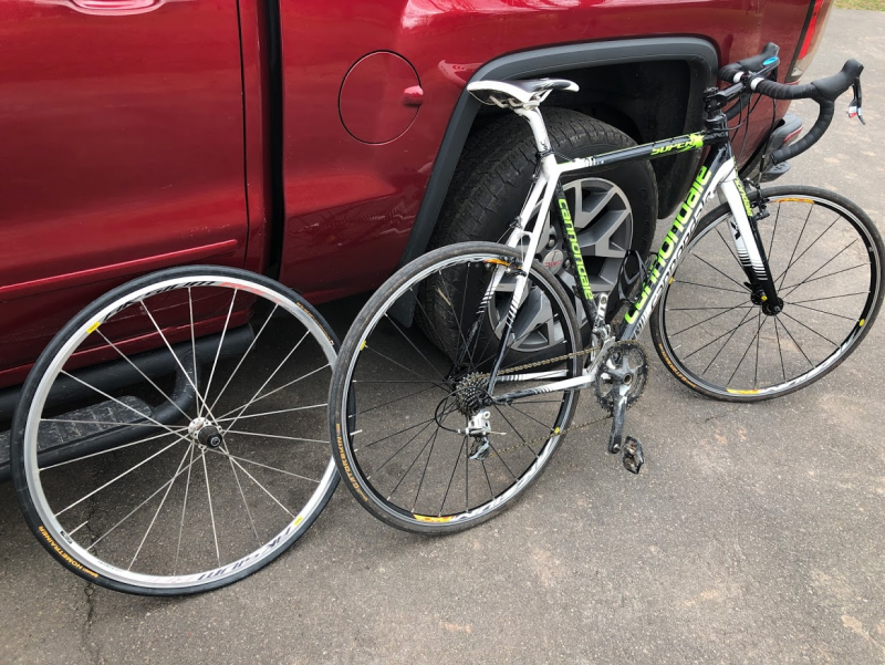 Old front goes in the basement on the bike mounted in the trainer - and the rear goes to @clarkenstein