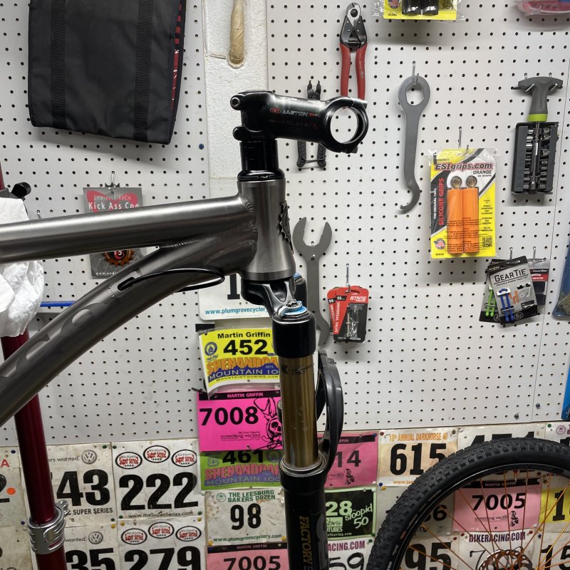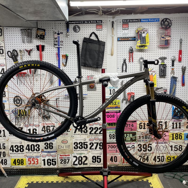 Since September, I've been waiting on a replacement frame for my cracked Moots. The while thing is a PIA because they don't actually make the Mooto-X anymore, so I'm waiting on a Womble. It's different geometry (more "modern" trail bike than XC - optimized for 120 mm fork and generally slacker set up - but my shop told me he's pretty sure he can get the setup very similar to my original Moots set up, so there's that. But the changes required left me with extra parts from the existing bike. So, of course ... new build.